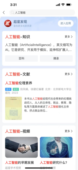 点击首页找资料搜索框并输入关键词,“搜索”即可进入结果页面,包括:知识、文献、视频、专题等,点击“详情”或“更多”可进入相关资源页面
