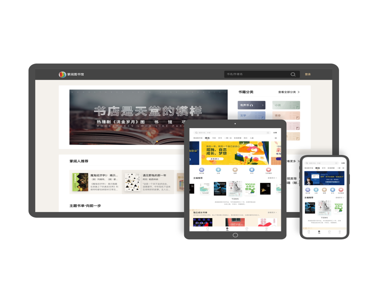 (▲掌阅精选数字阅读电脑端、阅读器、手机端界面)